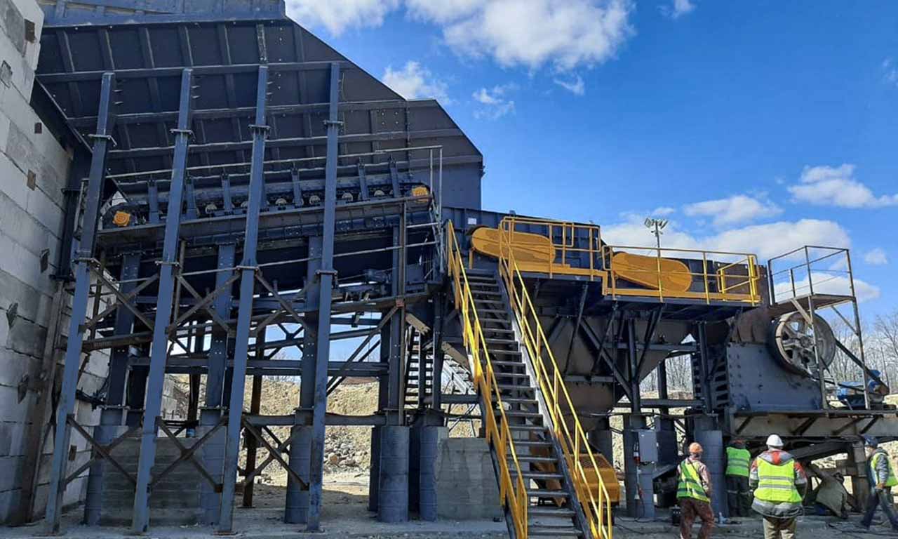 Déchargement de trémie, étapes de concassage primaire ou secondaire (alimentation du concasseur ou du crible)