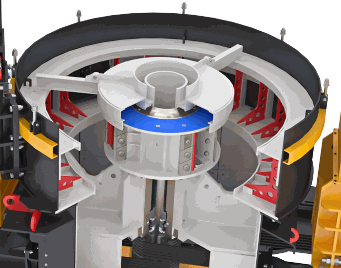 Le principe de concassage « roche sur roche » du concasseurs minimise les effets de l'usure métallique, ce qui se traduit par de faibles coûts de maintenance et d'usure. La faible usure des composants internes garantit une très faible contamination des produits fins par les pièces métalliques d'usure.