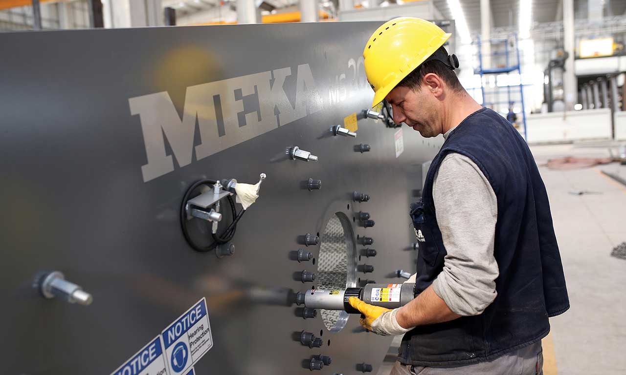 - Les cribles fonctionnent grâce aux vibrations. Les vibrations provoquent le desserrement des boulons et des écrous. Il ne doit pas y avoir de boulons desserrés dans le corps de crible. Un contre-écrou ou une rondelle moletée doit être utilisé pour empêcher les écrous de se desserrer. Un raccord boulon-écrou spécial appelé « huck-bolt » doit être utilisé pour empêcher le desserrage. Ce système de fixation constitue la meilleure garantie contre le desserrage.