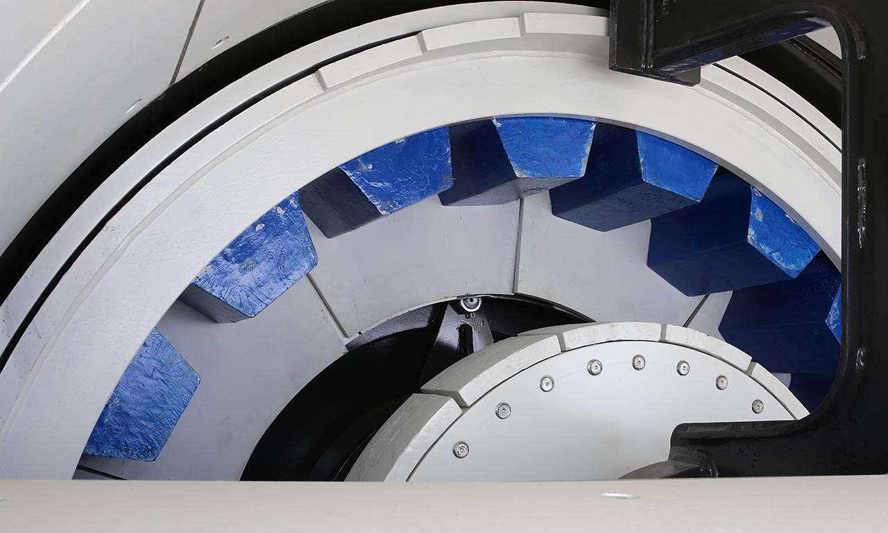 В конфигурации «камень о камень» (ROR) автогенное дробление происходит внутри камеры дробилки между материалом, отбрасываемым ротором, и материалом, находящимся на броневом кольце, или материалом, отбрасываемым броневым кольцом.