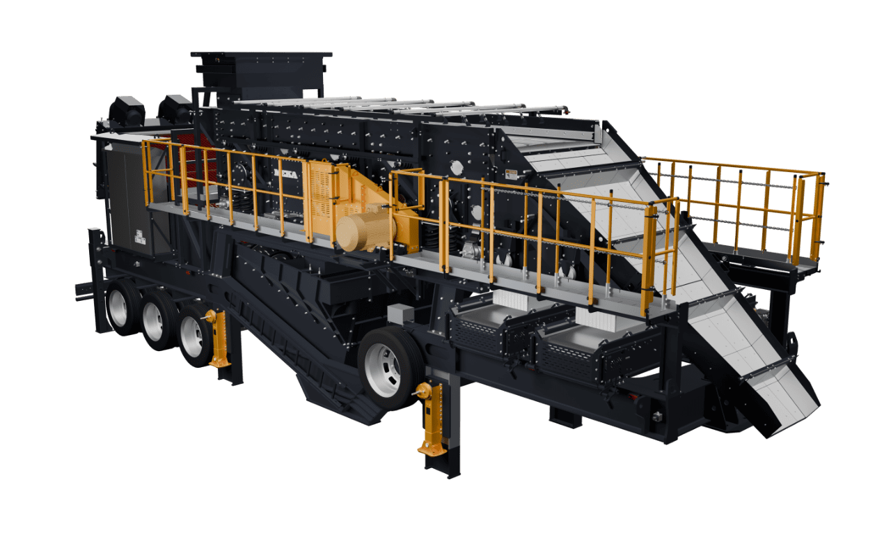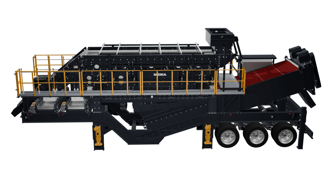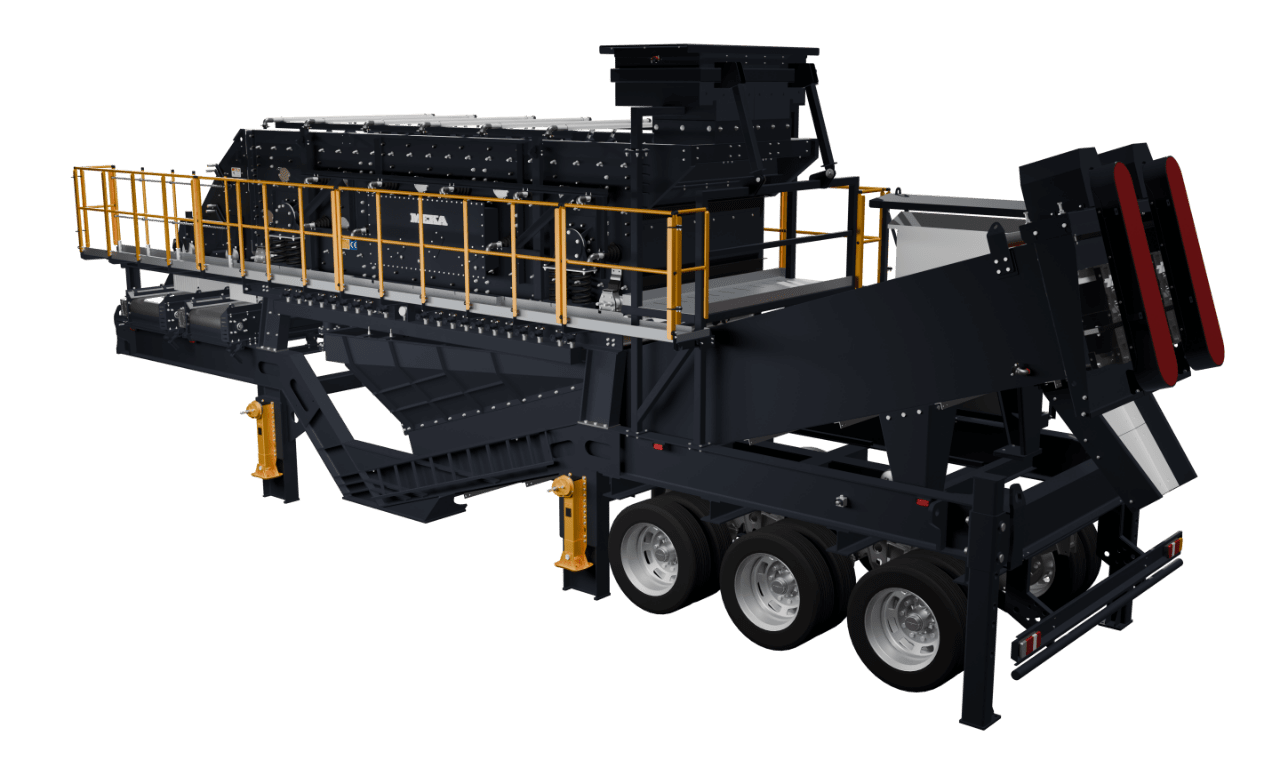 Полумобильная промывочно-сортировочная установка представляет собой комплекс, состоящий из горизонтального грохота, спирального классификатора и ленточного конвейера на полумобильном шасси.